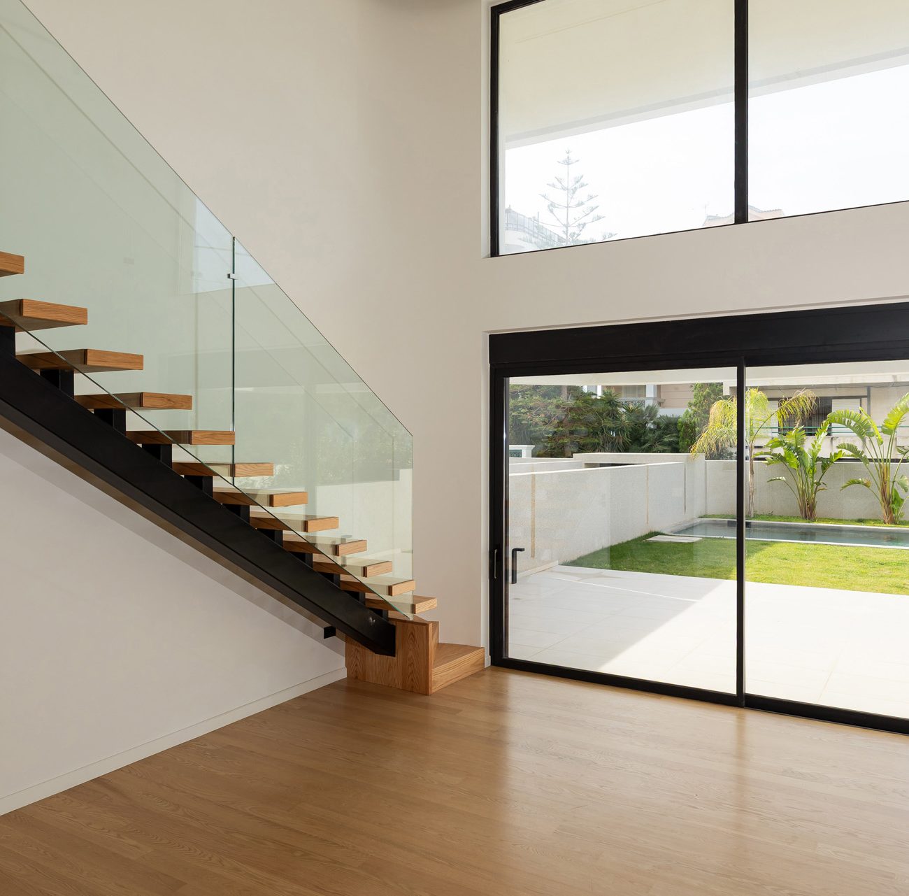 Τα γραμμικά και γυάλινα κάγκελα Frame συνδυάζουν αισθητική και λειτουργικότητα, προσφέροντας ασφάλεια χωρίς να περιορίζουν το φως και την ορατότητα.